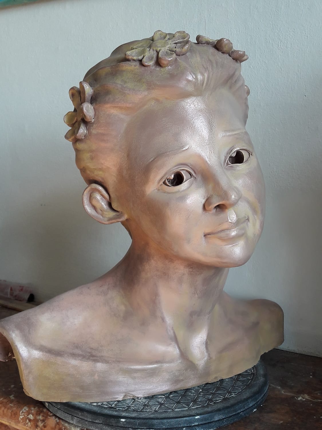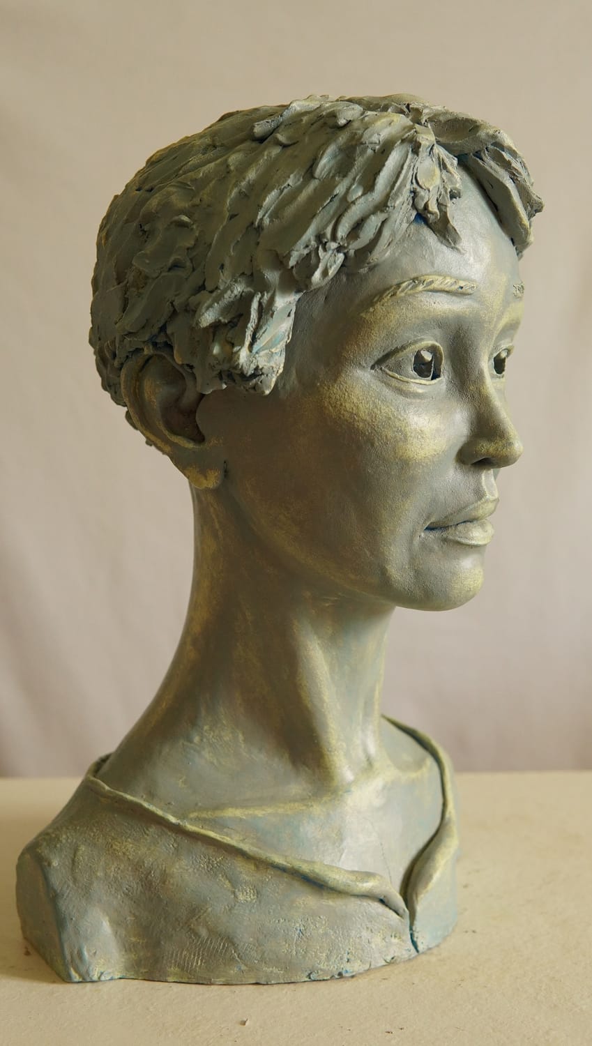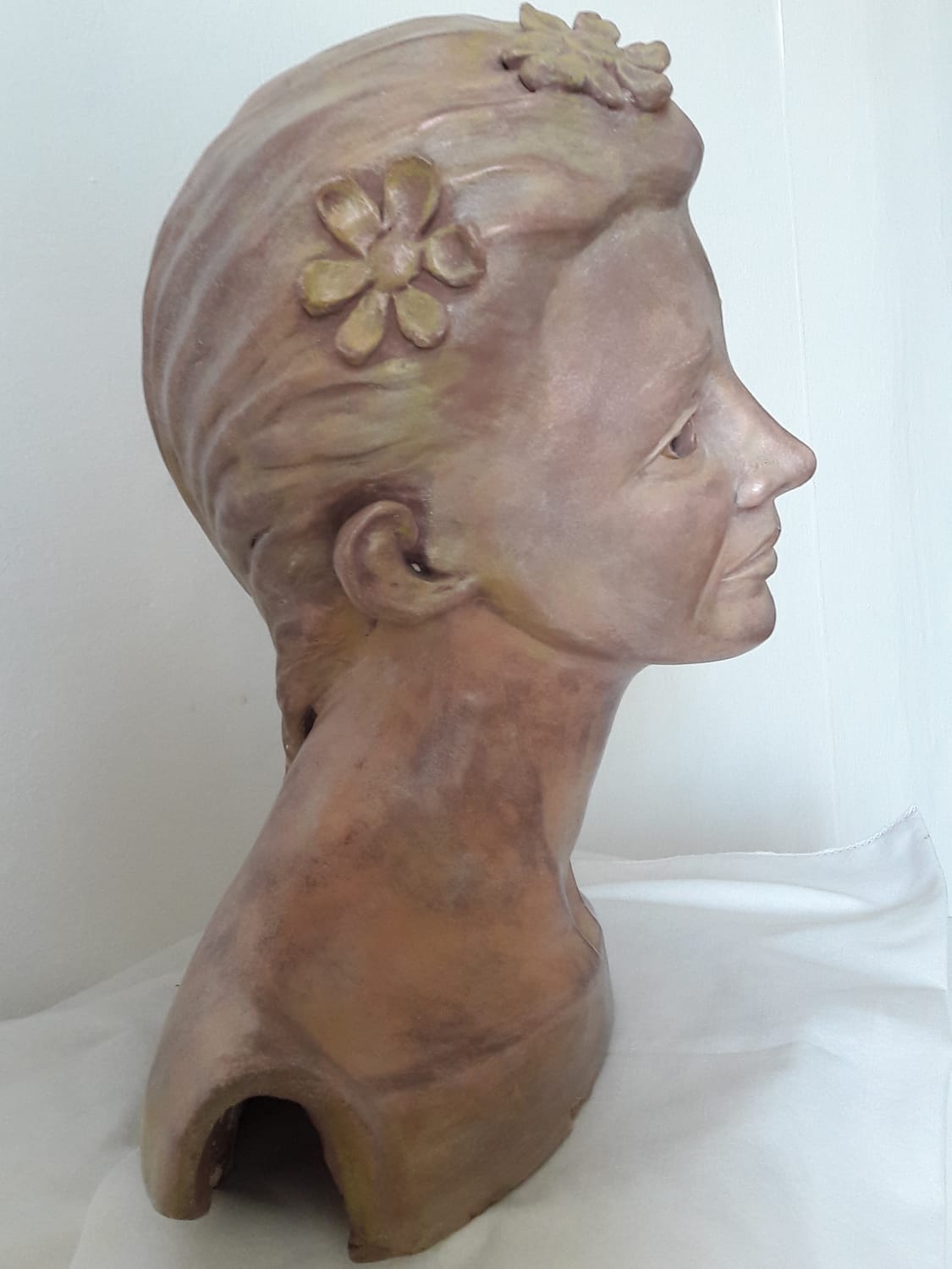 Je suis ravie de vous présenter mes bustes, réalisés dans une argile cuite à 950 °C et finalisés avec une patine à l’acrylique.