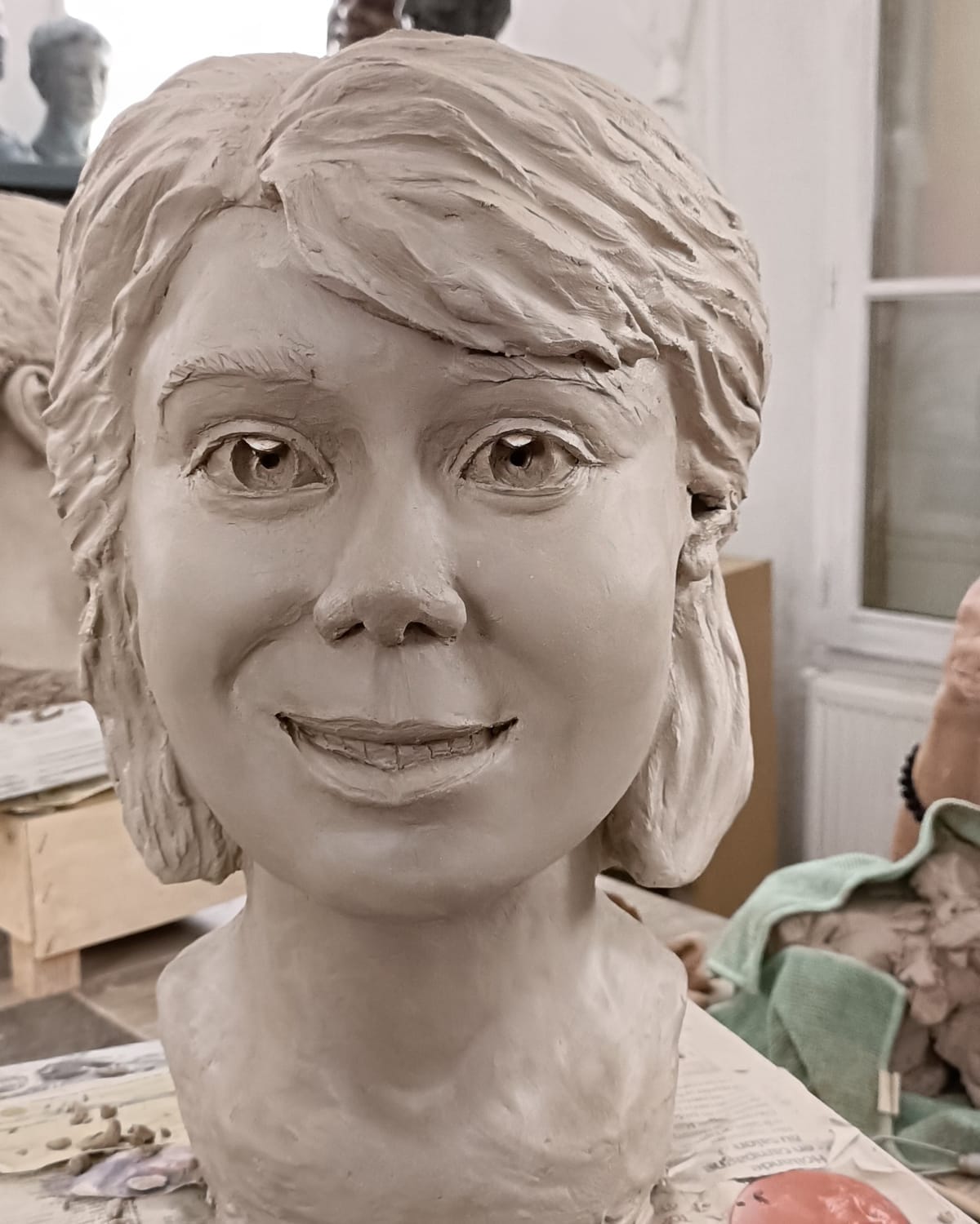 Stage réalisé en octobre en apportant les photos de notre personnage à réaliser (face, profil, 3/4). Superbes moments de découverte, d’application, de détente aussi car beaucoup de concentration pour la réussite du personnage. Nous passons la semaine avec notre personnage que l’on voit évoluer, que l’on façonne, que l’on caresse . Ce sont des instants magiques, grâce aussi et surtout à Muriel qui, avec son professionnalisme tout en douceur, nous transmet son savoir et nous aide à la réalisation en cas de difficulté.